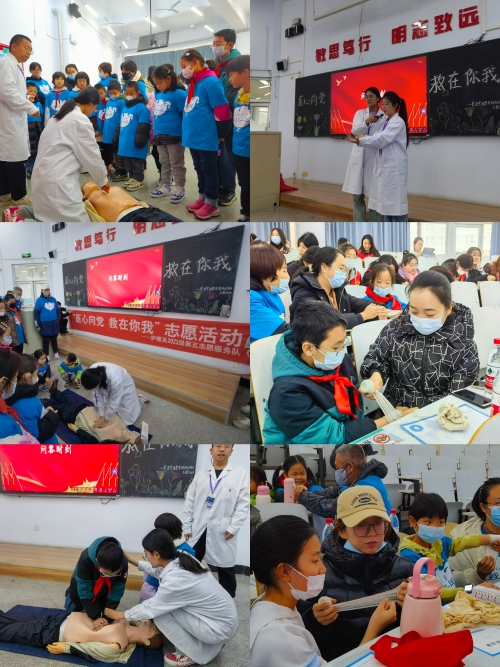 为学习贯彻党的二十大精神,引导广大群众传承红色基因,赓续红色血脉,同时为向广大群众宣传普及基本急救知识,护理系2021级第五志愿服务队联合护理系学生第一党支部,邀请30位小朋友及其家长于2023年11月25日开展“医心向党,救在你我”主题志愿活动,本次志愿活动共分为3项。